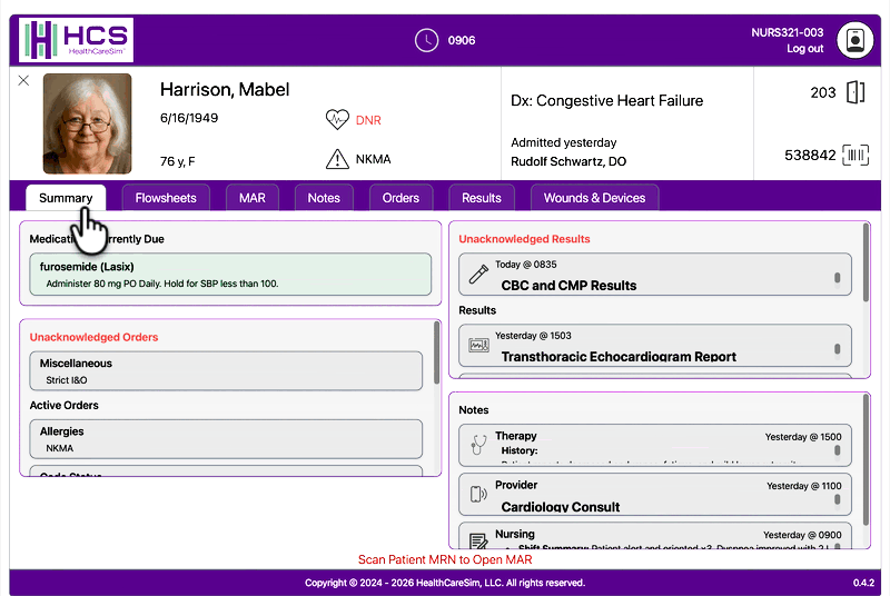 Our simulated electronic health record (EHR) helps nursing student educators create nurses competent with EHR use by eliminating outdated and cumbersome manual charting processes (such as paper charting or unrealistic Excel spreadsheets) and providing hands-on experience using barcode scanners and electronic charts.